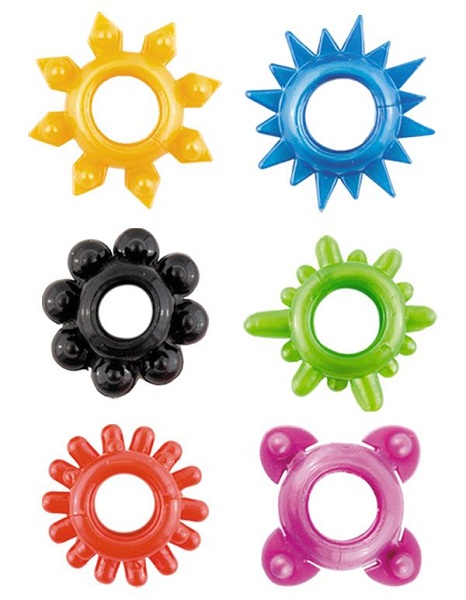 Пусть секс будет радужным! Эти разноцветные эрекционные колечки внесут некоторое разнообразие в вашу сексуальную жизнь. Все они сделаны из силикона и прекрасно растягиваются. Кроме того, приводят ваш член в состояние боевой готовности. Однако каждая имеет свой рельеф. Все эти шишечки, шипы и усики будут стимулировать клитор партнерши.