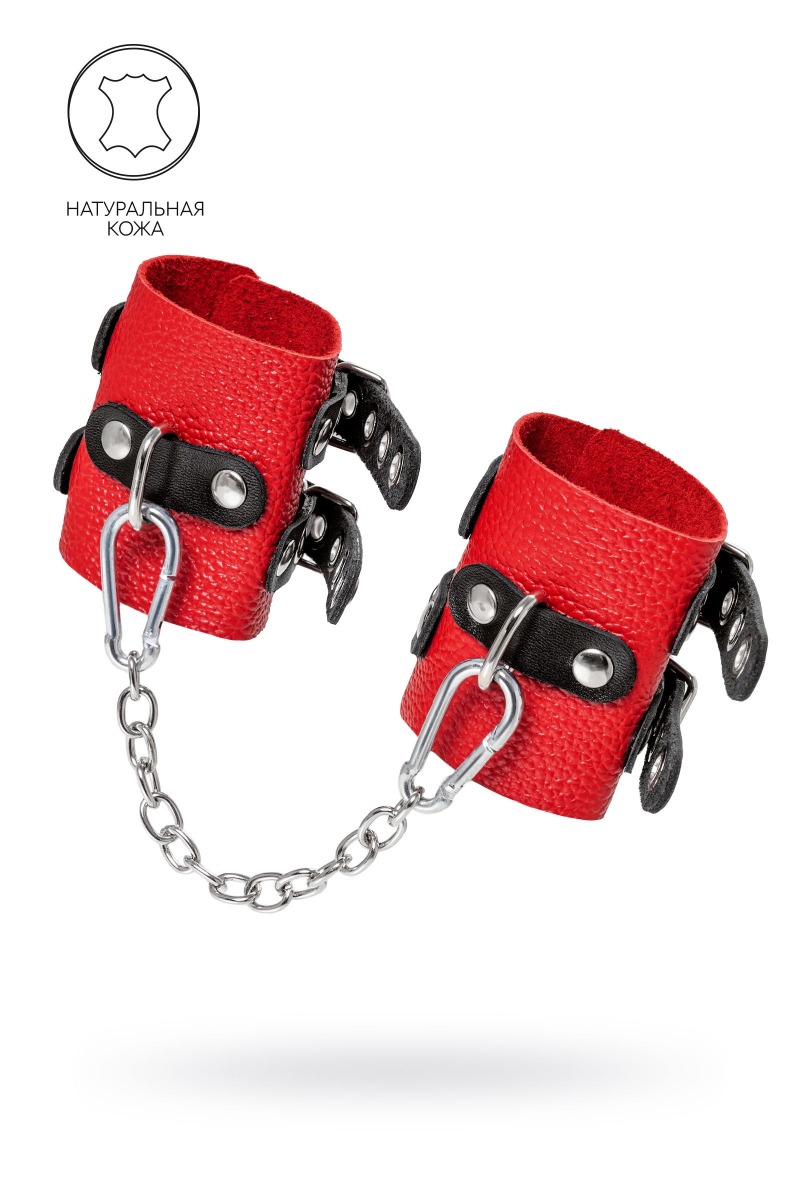 Не бойтесь своих желаний! Основатели бренда уверены: лучший способ избавиться от искушения - поддаться ему! Мягкие, красные, кожаные наручники с двумя чёрными, жёсткими ремнями могут стать стильным аксессуаром, а могут послужить вашим целям по своему прямому назначению. Частичное обездвиживание и невозможность двигать руками дают вам полную власть над партнером – взрослые игры для взрослых. Наличие двух колец и карабинов, соединенных между собой металлической цепочкой, позволяет использовать изделие как раздельно – аксессуар-манжеты, так и как наручники для фиксации. К широким металлическим кольцам также можно присоединить и другие аксессуары при помощи карабинов. Благодаря универсальному размеру наручники могут использоваться и мужчинами, и женщинами. Длина манжет - 18 см, ширина - 7 см.