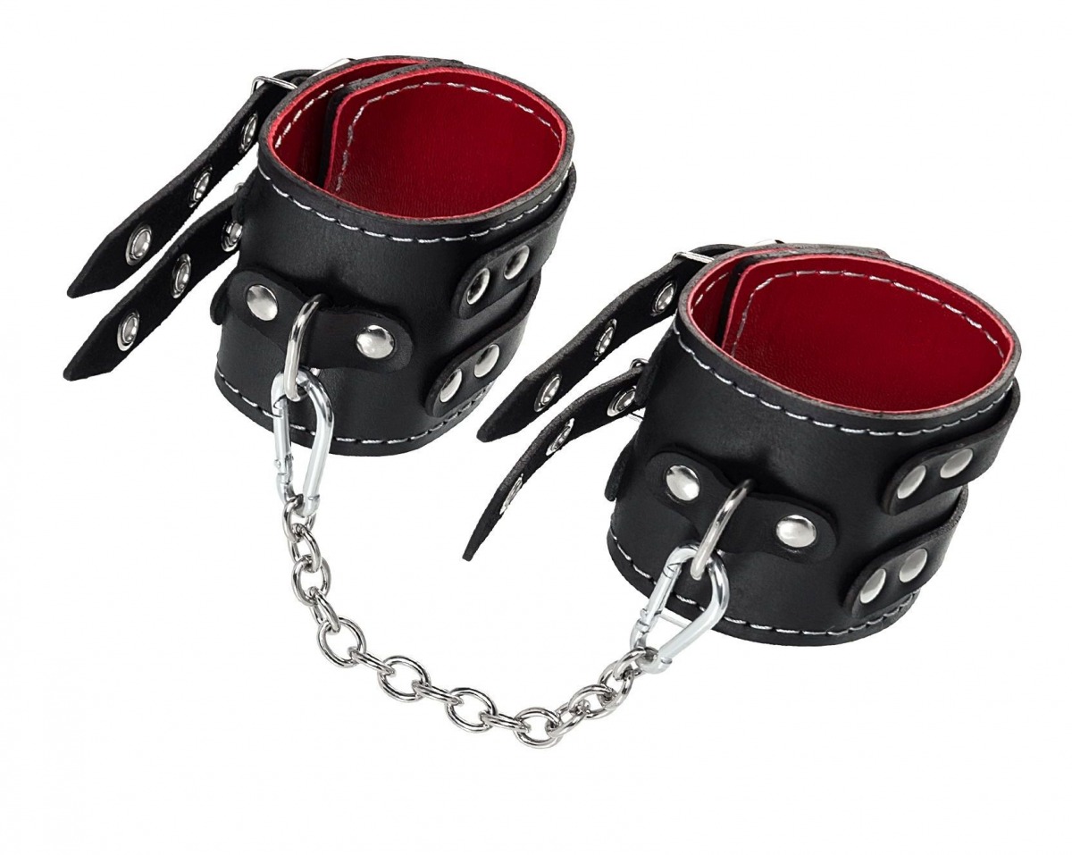 Эти кожаные оковы с двумя ремнями и красной подкладкой могут стать стильным аксессуаром, а могут послужить вашим целям по своему прямому назначению. Частичное обездвиживание и невозможность двигать руками или ногами дают вам полную власть над партнером – взрослые игры для взрослых. Наличие двух колец и карабинов, соединенных между собой металлической цепочкой, позволяет использовать изделие как раздельно – аксессуар-манжеты, так и как оковы для фиксации. К широким металлическим кольцам также можно присоединить и другие аксессуары при помощи карабинов. Благодаря универсальному размеру оковы могут использоваться и мужчинами, и женщинами. Размер легко регулируется с помощью металлических пряжек, органично вписывающихся в общий стиль. Длина манжет - 20 см, ширина - 7 см. Длина сцепки - 13 см.