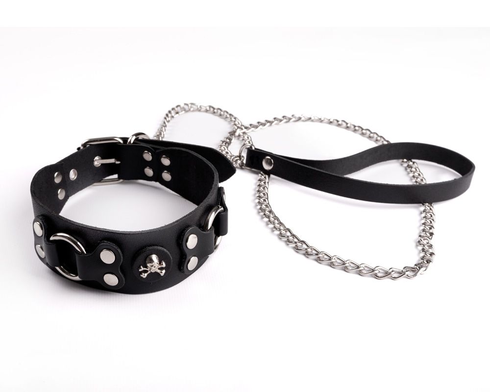 Ошейник изготовлен из натуральной кожи, регулируется при помощи пряжки. Поводок не входит в комплект!