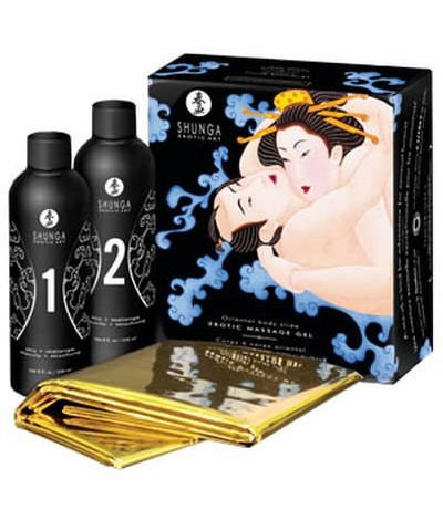 Этот гель с нежной консистенцией и приятным ароматом создан специально для массажа… тело об тело. Расстелите специальную золотистую простынь, чтобы не испачкать кровать. Нанесите немного геля на кожу, а после – потритесь о партнёра. Чувственное скольжение, нежные поцелуи… А ещё осознание того, как быстро в теле любимого растёт сексуальное желание! Да, такую «скользкую» прелюдию вам уже не забыть! Смесь дает 4 литра геля.Большое воздухонепроницаемое покрывало прилагается.