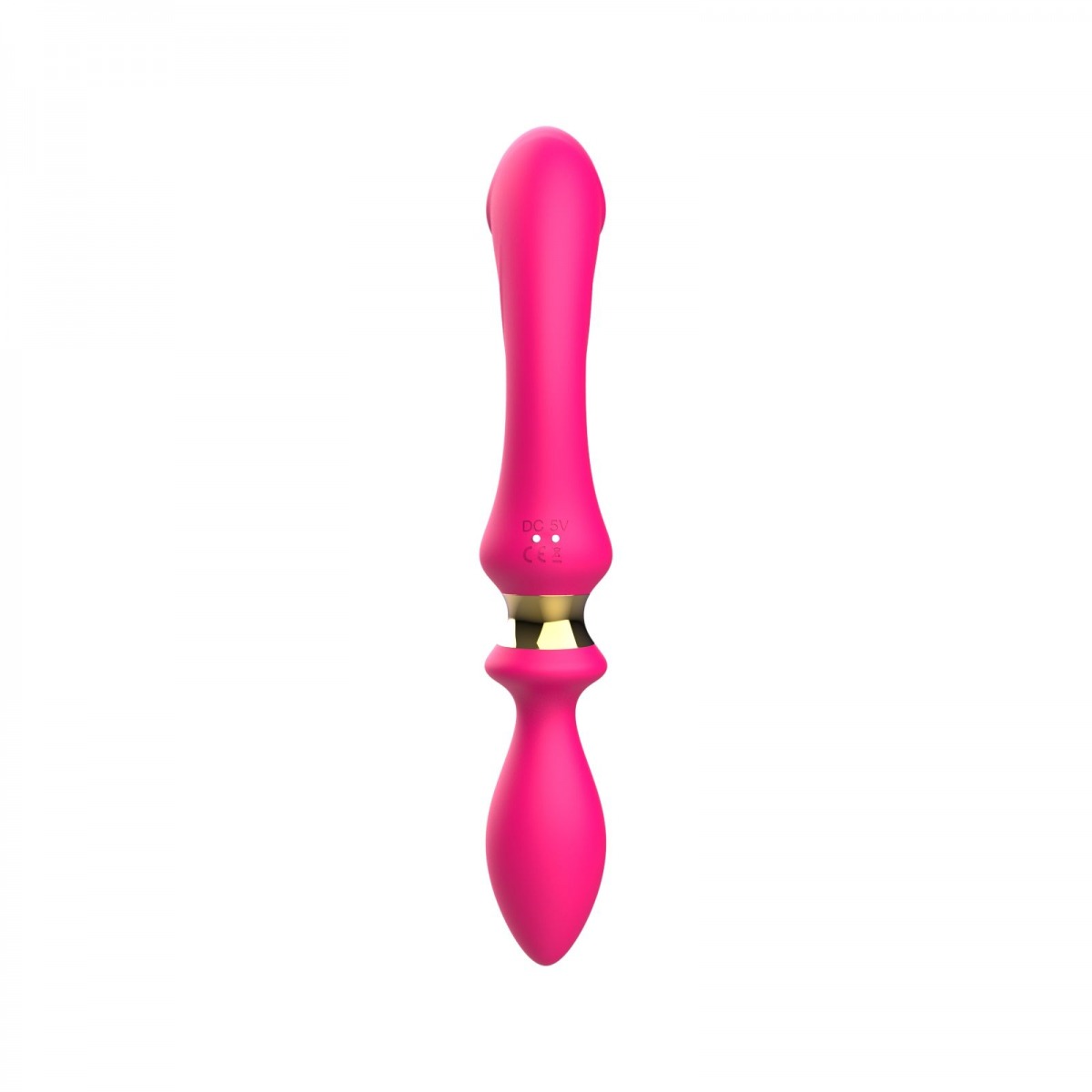 Розовый двусторонний вибромассажёр. Может использоваться обоими партнёрами - для вагинальной или анальной стимуляции. Имеет 10 режимов вибрации. Рабочая длина большого отростка - 12,8 см, диаметр - 3,8 см. Рабочая длина малого отростка - 9,1 см, диаметр - 3,7 см.