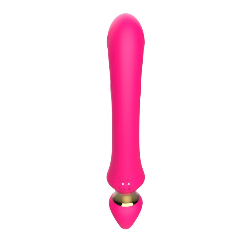 Розовый вибратор-кролик с ручкой-кольцом. 10 режимов вибрации. Рабочая длина - 13,3 см.
