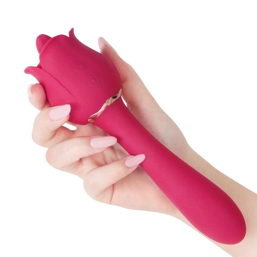 Интимный аксессуар в виде прекрасной розы займёт достойное место в любой коллекции секс-игрушек. Игривый язычок внутри бутона двигается и вибрирует в разных режимах, нежно лаская сосочки, клитор и другие эрогенные зоны. Стебель «цветка» используется как вибромассажёр, даря восхитительные оргазмы. Переключение виброрежимов усиливает возбуждение. 9 режимов вибрации, 9 режимов работы язычка. Стебель гнётся в стороны и фиксируется в нужном положении, позволяя комфортно использовать гаджет. Включение/выключение вибрации в бутоне — нажать и 3 сек. удерживать соответствующую кнопку на корпусе изделия. Должен загореться/погаснуть световой индикатор. Переключение виброрежимов — краткое нажатие той же кнопки. Включение/выключение вибрации в стебле - нажать и 3 сек. удерживать соответствующую кнопку на корпусе изделия. Должен загореться/погаснуть световой индикатор. Переключение виброрежимов - краткое нажатие той же кнопки.Вибрацию в бутоне и стебле можно включатьотдельно или одновременно. Рабочая длина - 14 см.